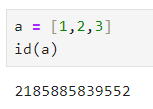 ** id() 함수 사용 / 리스트 [1,2,3]의 주소값 출력 / 시작할때 마다 값은 바뀐다.
