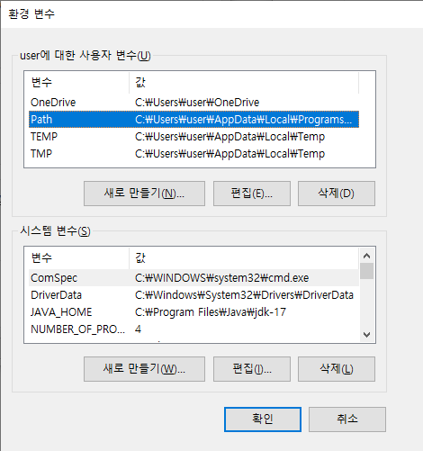 시스템 환경변수 > Path > 편집 > C:/venvs