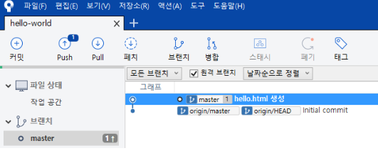정상적으로 커밋을 할 경우 'push'에 1로 표시된다.