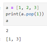 ** a.pop(1)은 a리스트의 index 1 값이며, 리스트 안의 2이다. a 출력 시 2가 삭제된 [1,3]만 출력