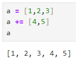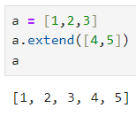 ** 예시 2)의 a.extend([4,5])는 a +=[4,5]와 동일한 표현식이다.