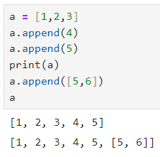** append는 '덧붙이다. 첨부하다'란 뜻으로 리스트 안에 리스트도 추가할 수 있다.