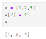 ** 리스트 a에 숫자 1,2,3 뿐만 아닌 다른 리스트 ['a', 'b', 'c']를 포함하였으며 인덱스 값에 맞춰 출력된다.