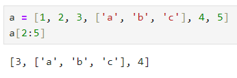 ** a[2:5]는 index 0부터 시작할 때 2의 값은 3이되며, 5의 값은 4를 나타낸다.