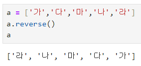 ** reverse함수는 출력된 리스트를 역순으로 출력한다.