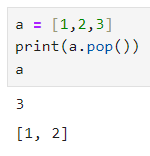 ** a 리스트를 살펴보면 마지막 요소인 3을 삭제하고 [1,2]만 남아 출력