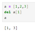 ** del 함수를 사용하여 index 1의 값인 2가 삭제 되어 1, 3 출력