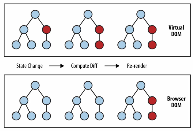 위 그림처럼 어떤 상태의 변경, state Change가 일어나면 Vertual DOM에서는