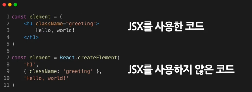 # 위 코드는 자바스크립트 코드와 html 코드가 결합되어 있는 JSX 코드가 된다.