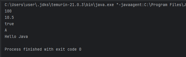 코드에서 개발자가 직접 적은 100, 10.5, true, 'A', "Hello Java"와 같은 고정된 값을