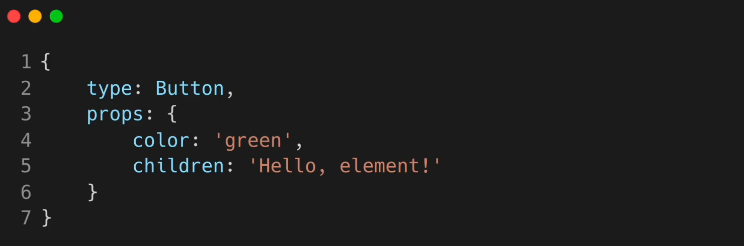 엘리먼트는 컴포넌트 유형과 속성 및 내부의 모든 자식에 대한 정보를 포함하고 있는