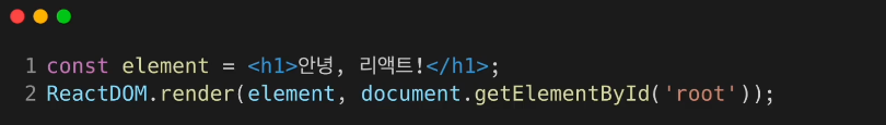 # 루트 DIV에 실제로 리액트 엘리먼트를 랜더링하기 위해서는 위 코드를 사용한다.